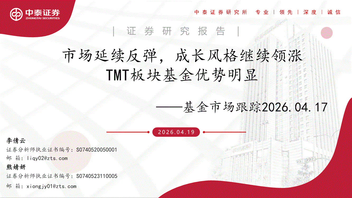 中泰证券-基金市场跟踪:市场延续反弹,成长风格继续领涨TMT板块基金优势明显-260419