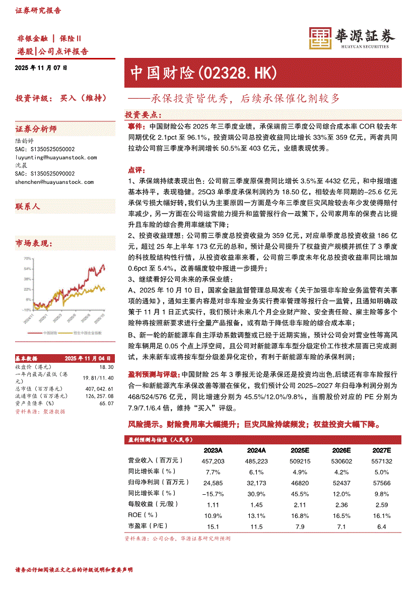 中国财险:华源证券-中国财险-2328.HK-承保投资皆优秀,后续承保催化剂较多-251107