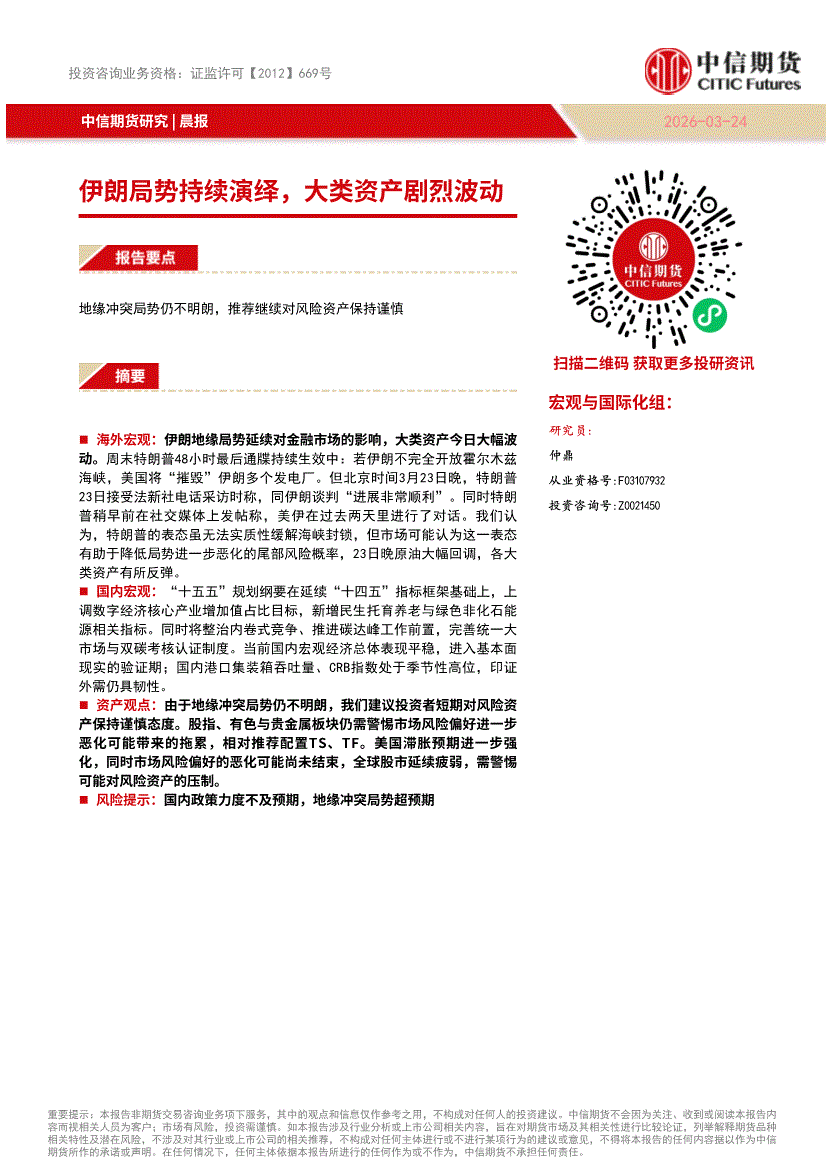 中信期货-晨报:伊朗局势持续演绎,大类资产剧烈波动-260324