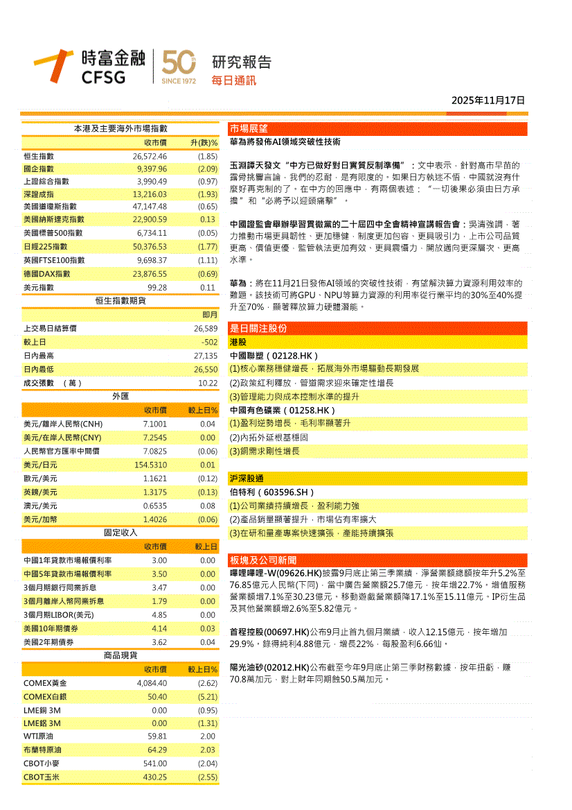 时富金融-每日通讯-251117