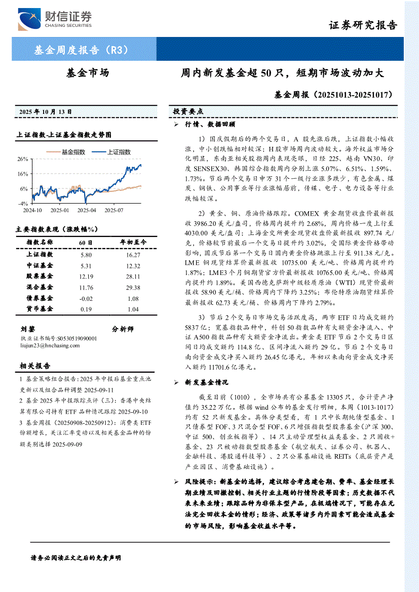 财信证券-基金周报:周内新发基金超50只,短期市场波动加大-251013
