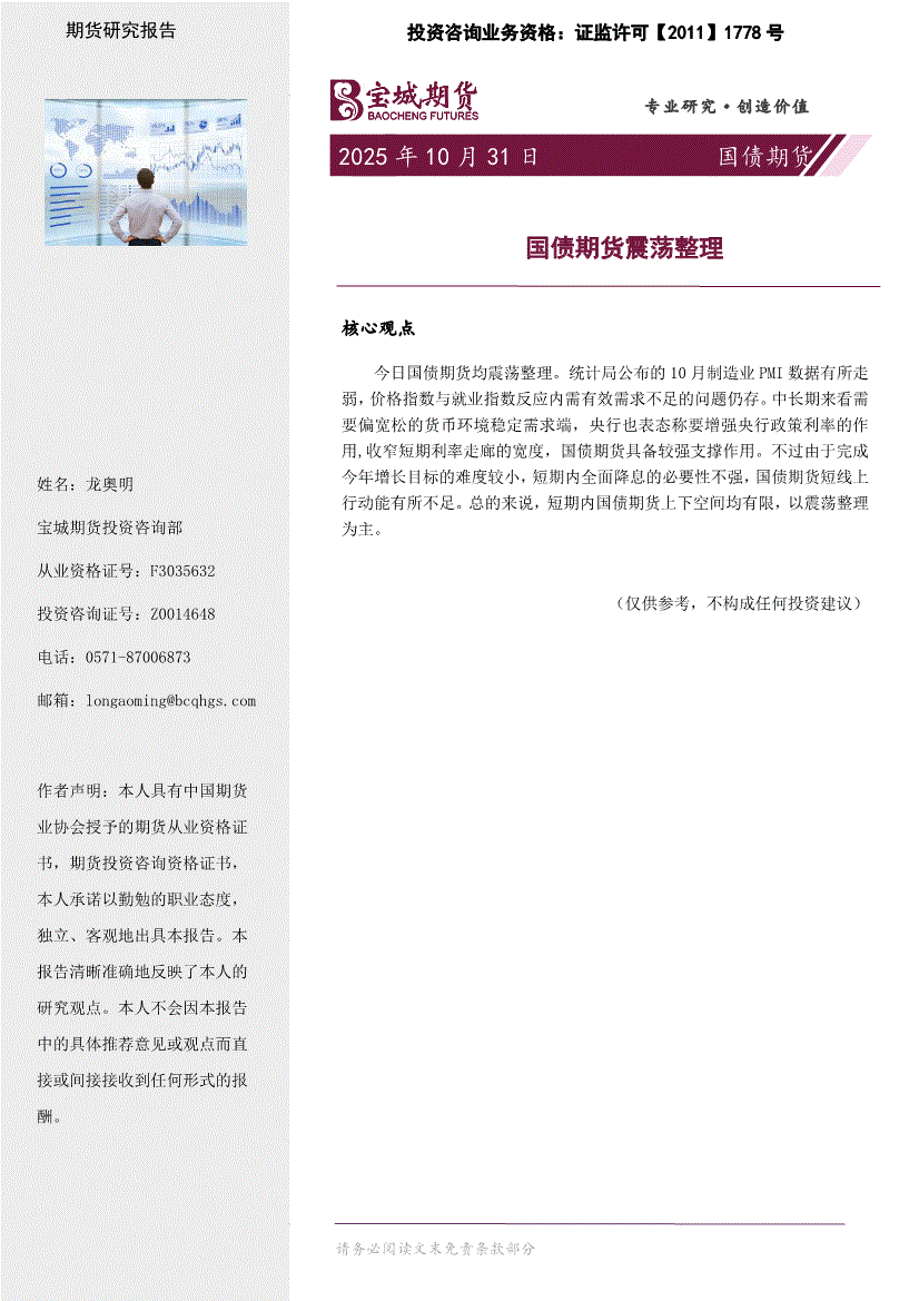 宝城期货-国债期货日报:国债期货震荡整理-251031