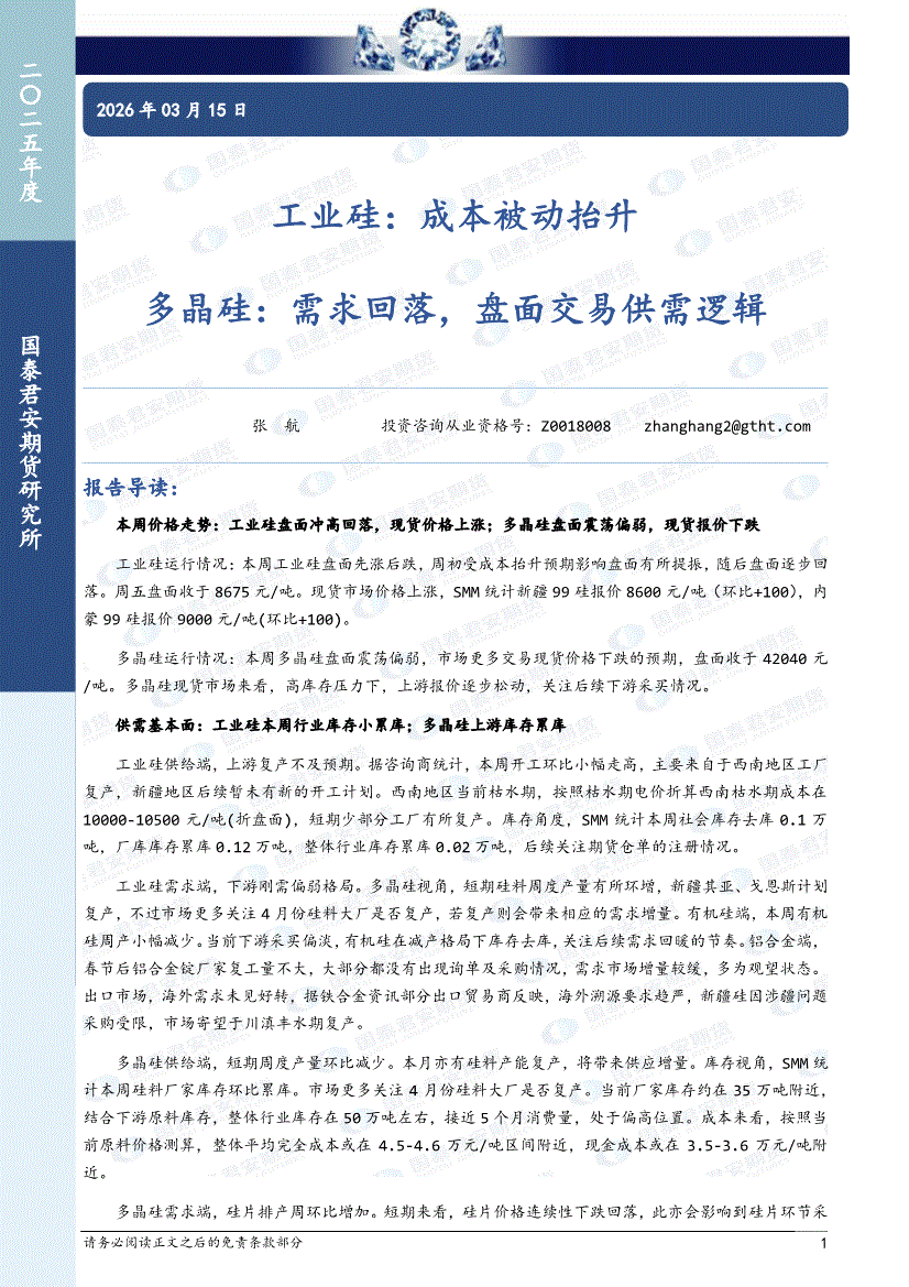 国泰君安期货-工业硅:上游复产,关注市场情绪扰动,多晶硅,关注市场“反内卷”情绪-260301