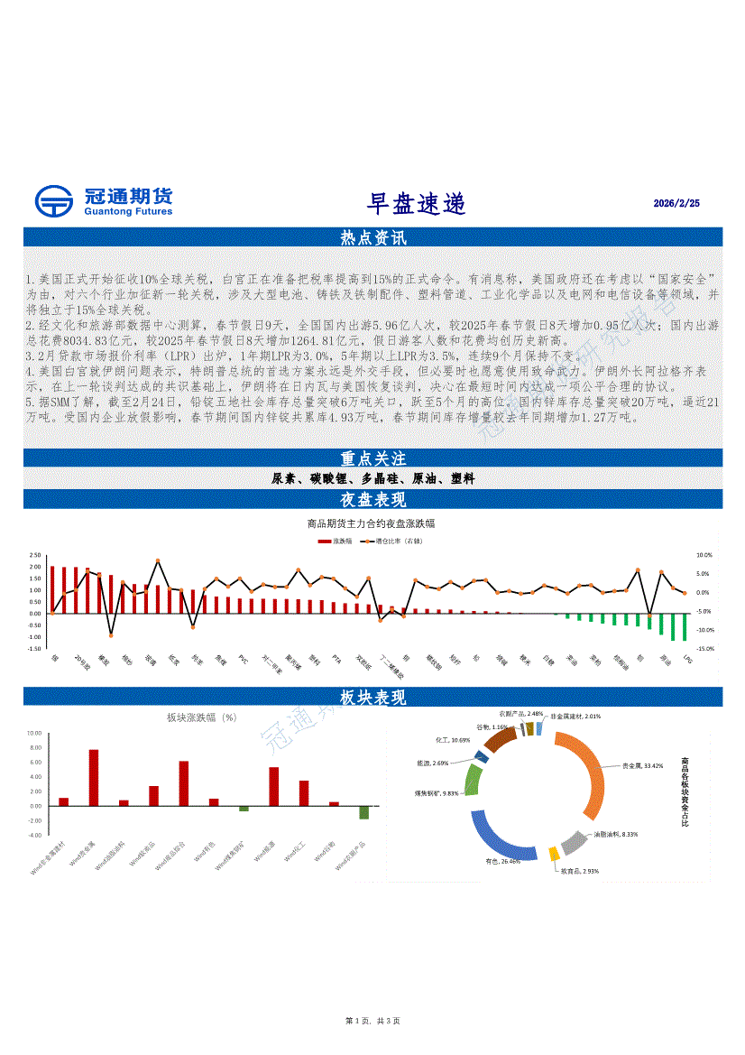 冠通期货-春节假期外盘市场涨跌幅统计-260223