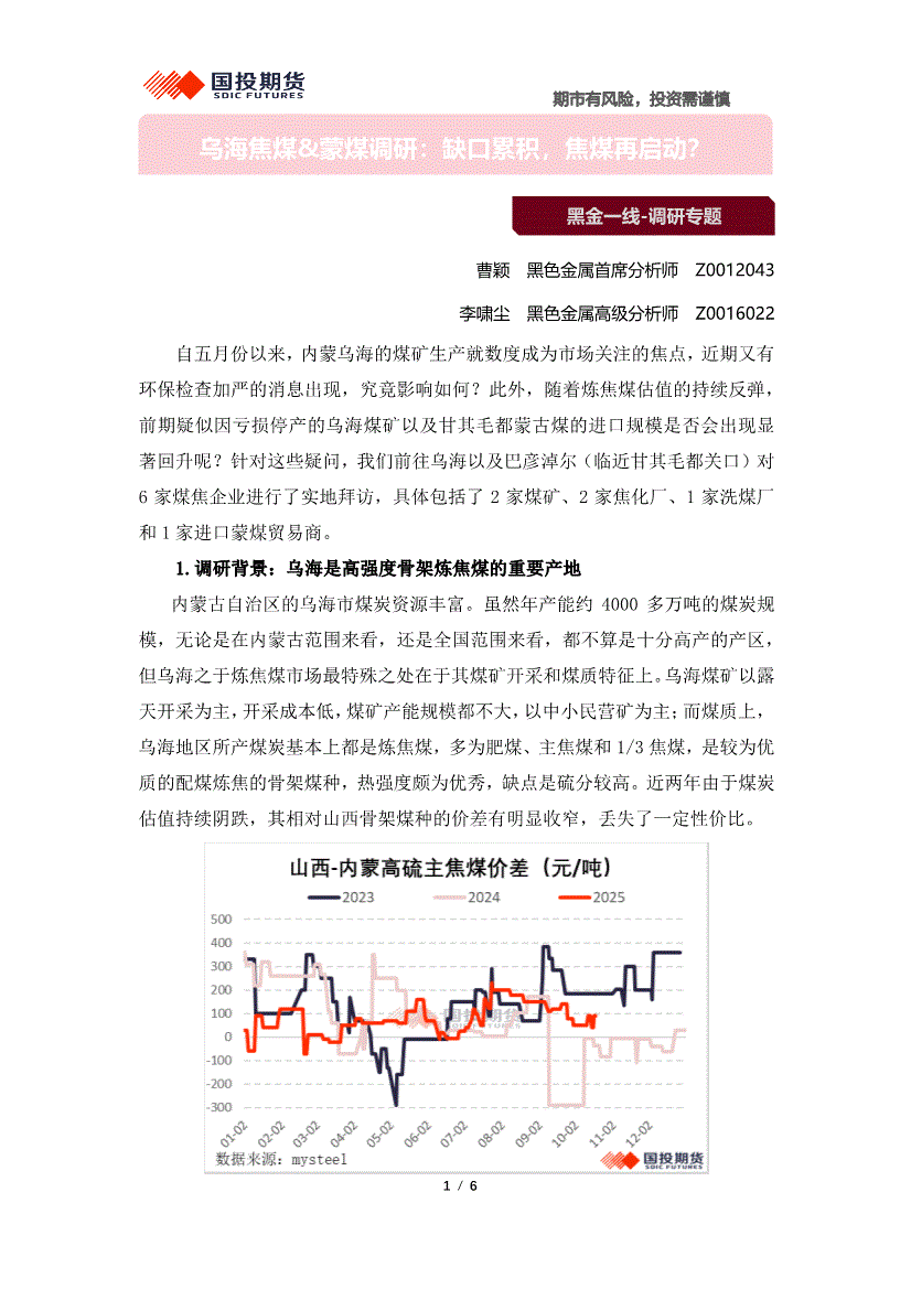 国投期货-乌海焦煤&蒙煤调研:缺口累积,焦煤再启动?-251024