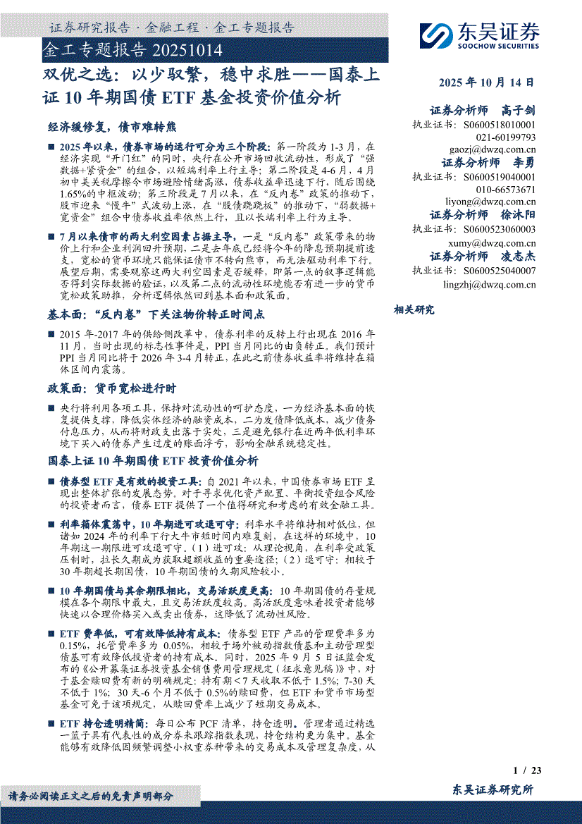 东吴证券-金工专题报告:双优之选,以少驭繁,稳中求胜——国泰上证10年期国债ETF基金投资价值分析-251014