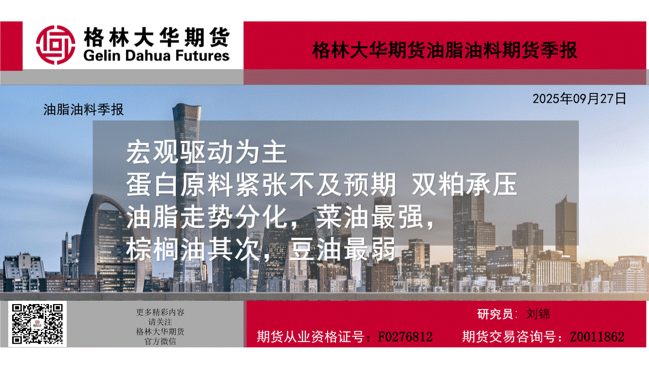 格林大华期货-油脂油料期货季报:宏观驱动为主,蛋白原料紧张不及预期,双粕承压,油脂走势分化,菜油最强,棕榈油其次,豆油最弱-250927
