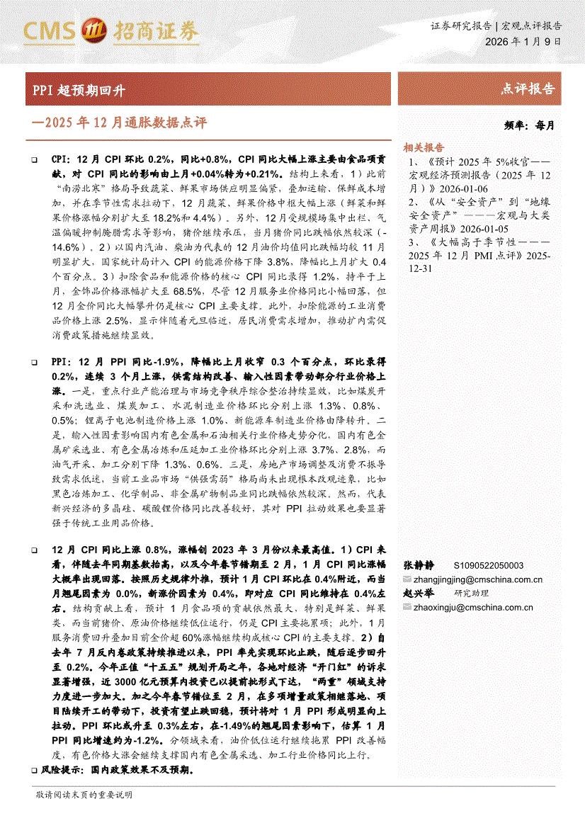 招商证券-2025年12月通胀数据点评:PPI超预期回升-260109