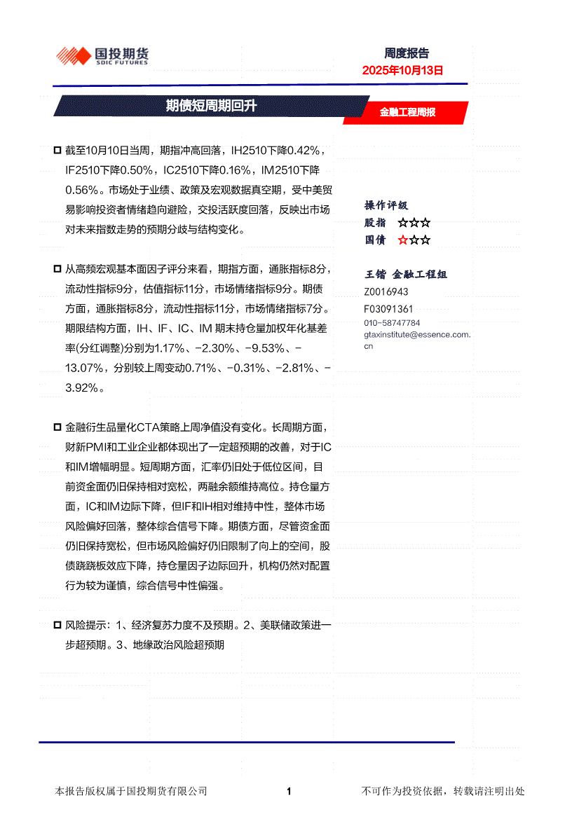 国投期货-金融工程周报:期债短周期因子下降-250714