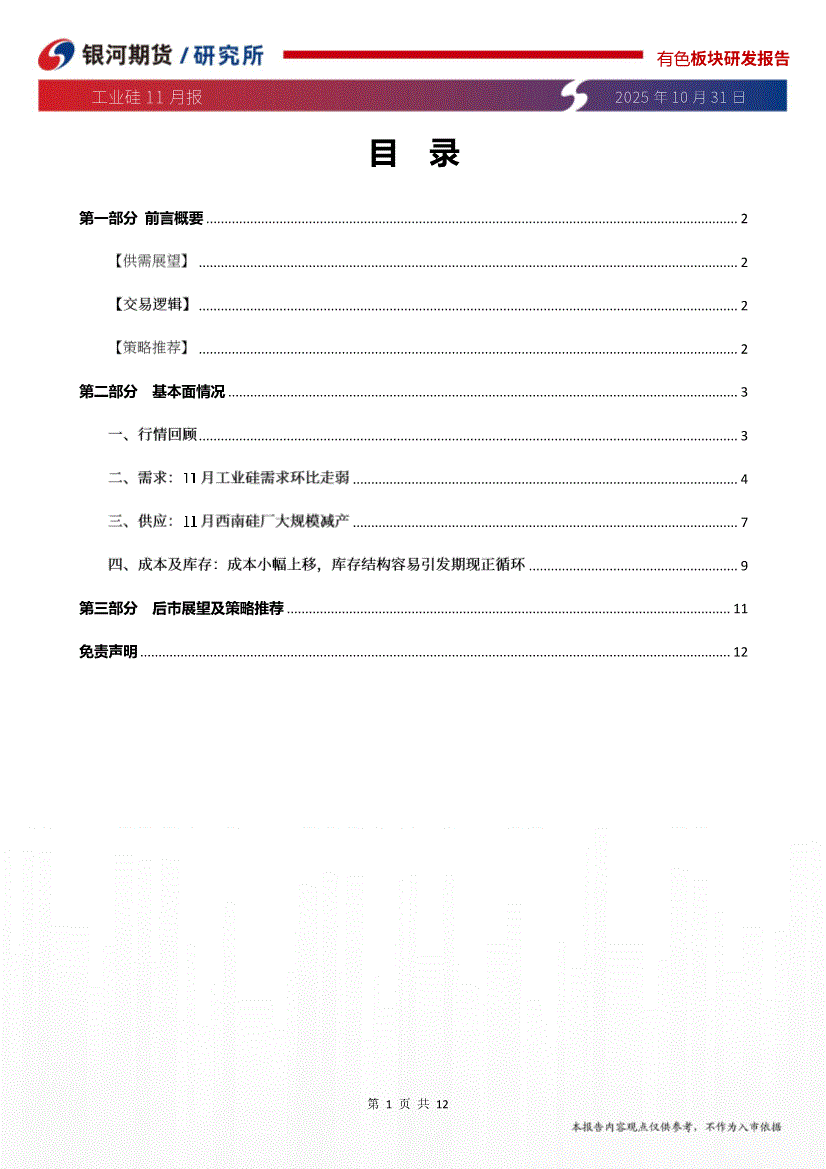 银河期货-工业硅11月报:底部明朗无驱动,关注西北环保情况-251031