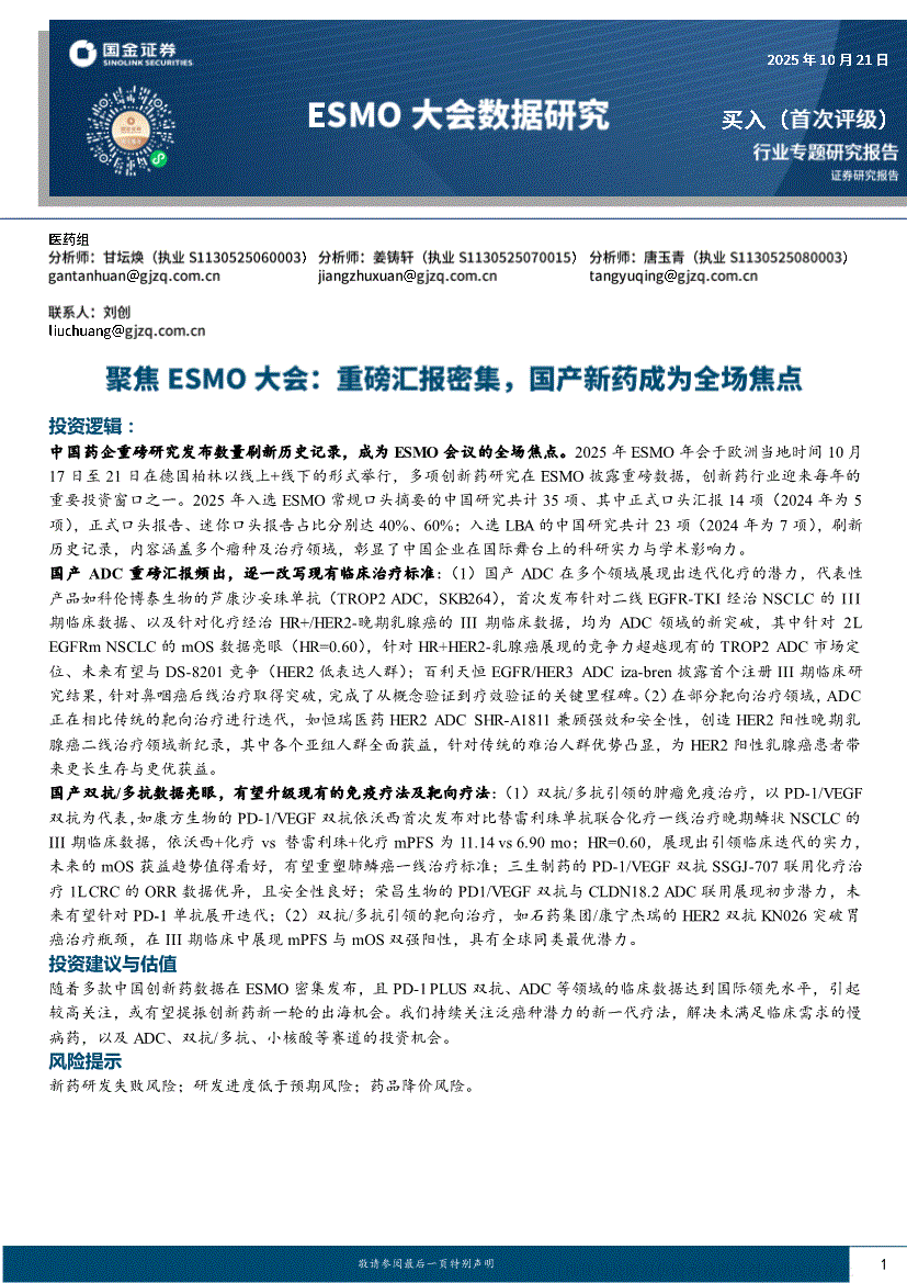 医药行业:国金证券-医药行业ESMO大会数据研究:聚焦ESMO大会,重磅汇报密集,国产新药成为全场焦点-251021
