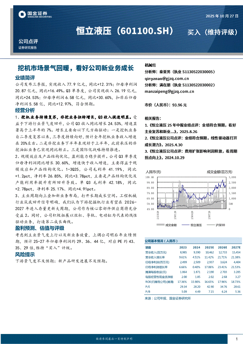 恒立液压:国金证券-恒立液压-601100-挖机市场景气回暖,看好公司新业务成长-251027