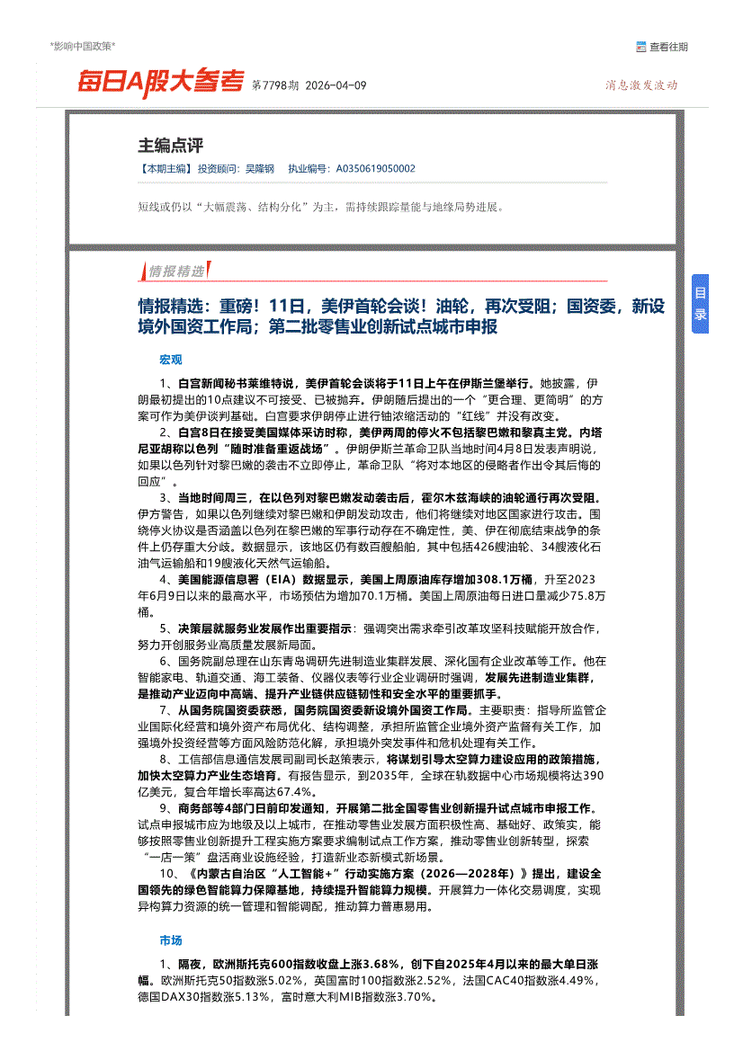 博览财经-每日A股大参考第7798期-260409