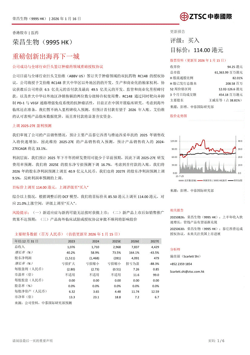 荣昌生物:中泰国际-荣昌生物-9995.HK-重磅创新药出海再下一城-260116