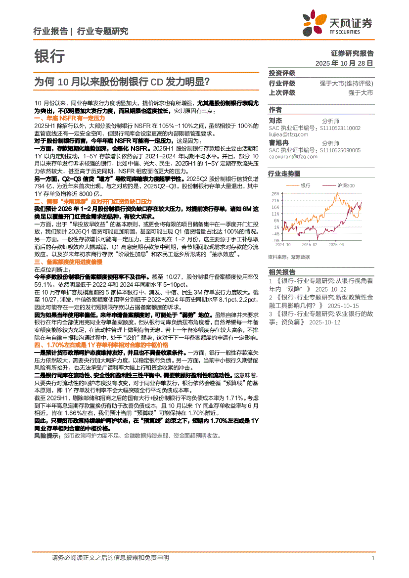 银行业:天风证券-银行业:为何10月以来股份制银行CD发力明显?-251028