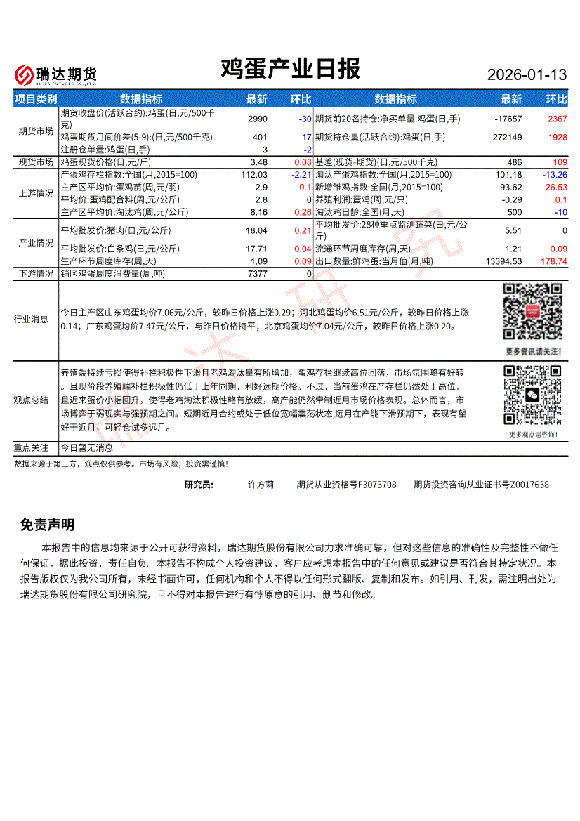 瑞达期货-鸡蛋产业日报-260113