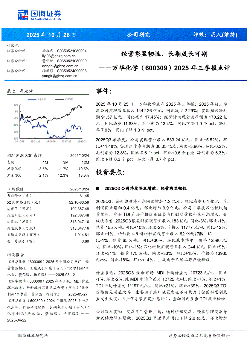 万华化学:国海证券-万华化学-600309-2025年三季报点评:经营彰显韧性,长期成长可期-251026
