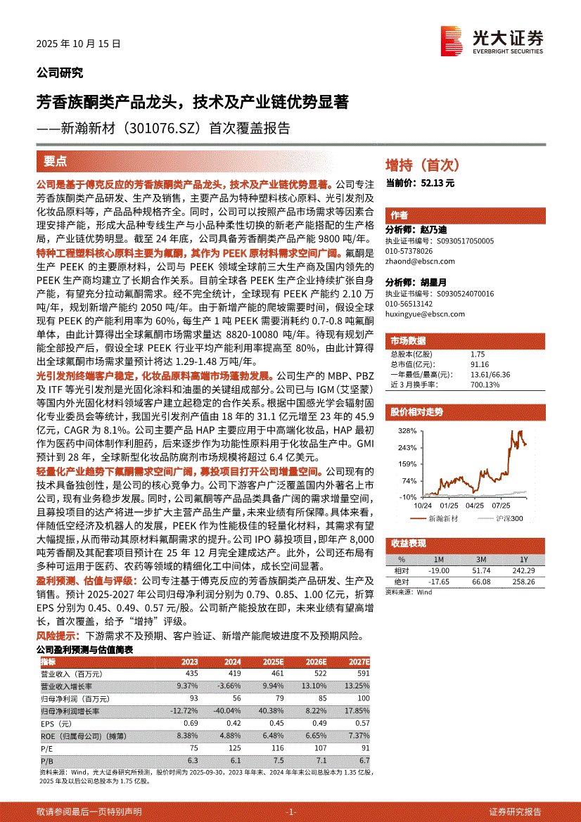 新瀚新材:光大证券-新瀚新材-301076-首次覆盖报告:芳香族酮类产品龙头,技术及产业链优势显著-251015