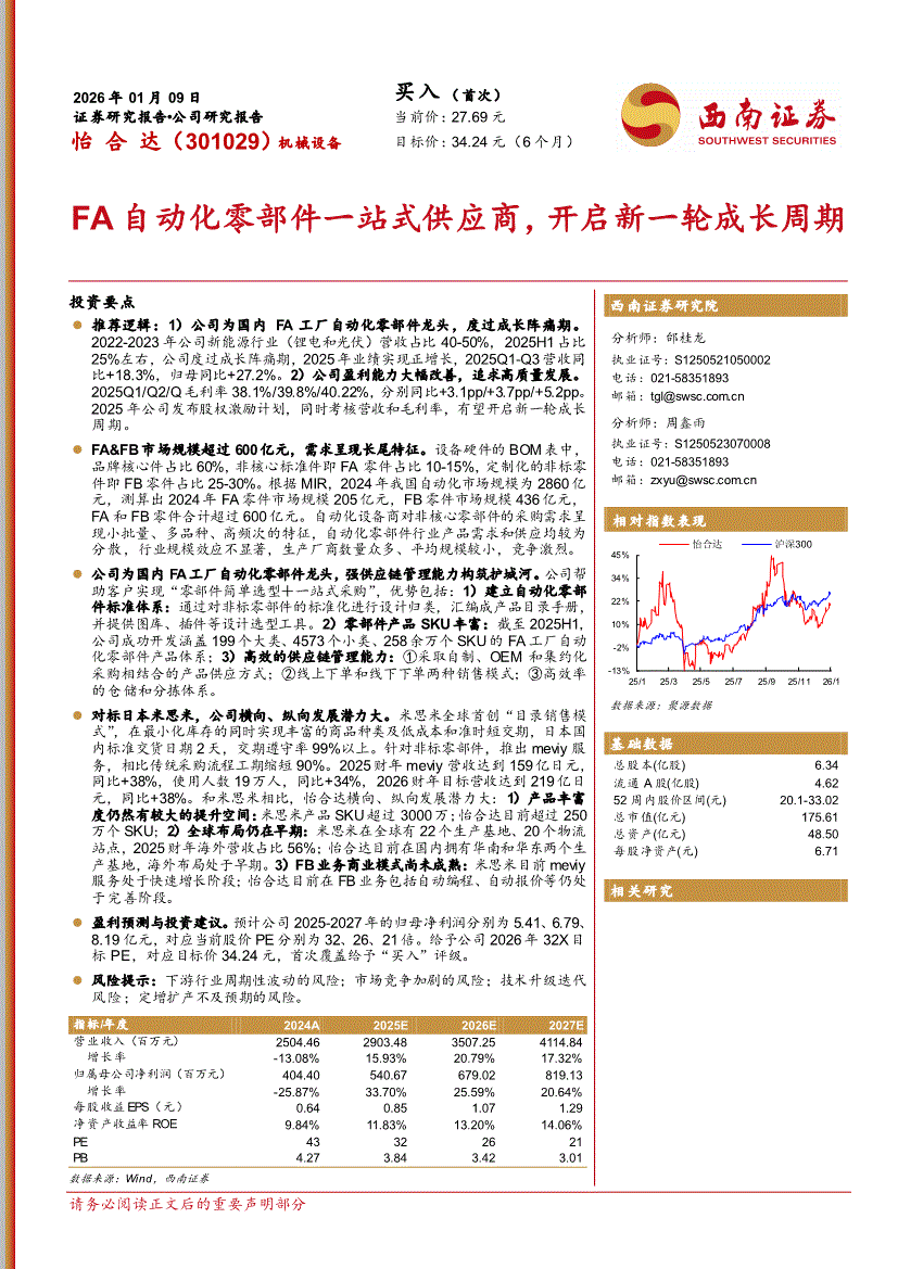 西南证券-怡合达-301029-FA自动化零部件一站式供应商,开启新一轮成长周期-260109