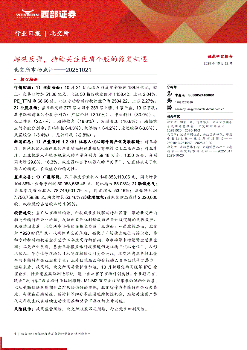 西部证券-北交所市场点评:超跌反弹,持续关注优质个股的修复机遇-251022