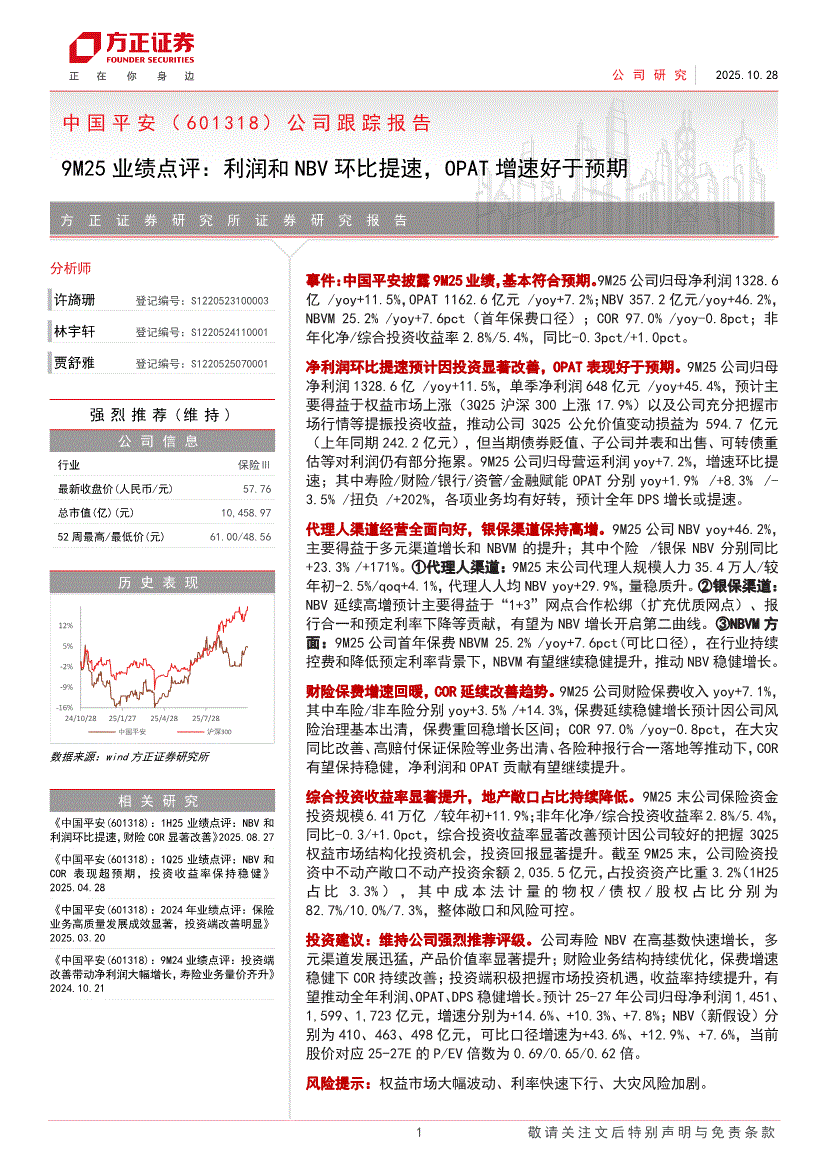 中国平安:方正证券-中国平安-601318-公司跟踪报告:9M25业绩点评,利润和NBV环比提速,OPAT增速好于预期-251028