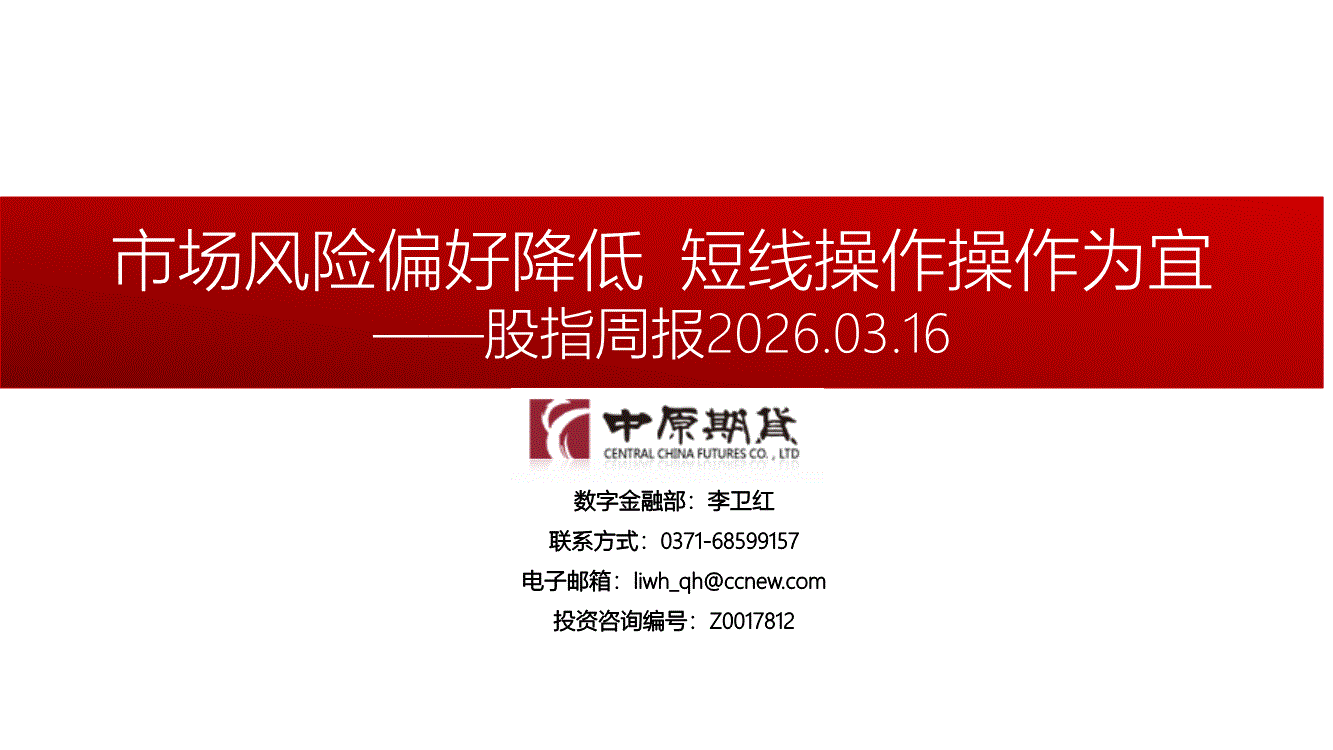中原期货-股指周报:市场风险偏好降低,短线操作操作为宜-260316