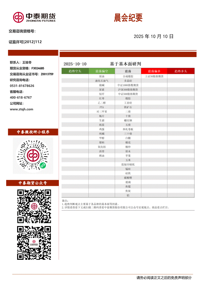 中泰期货-晨会纪要-251010