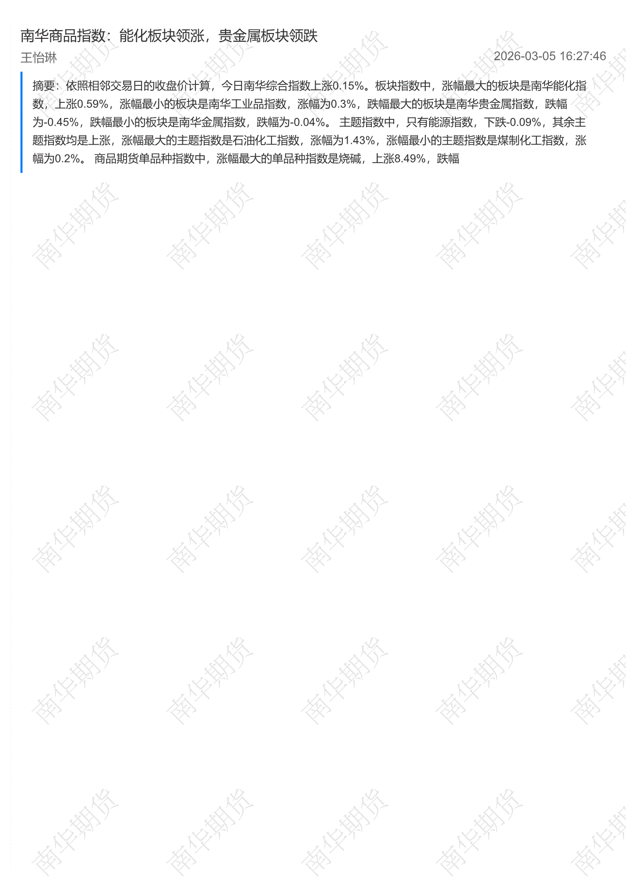 南华期货-商品指数:能化板块领涨,贵金属板块领跌-260305