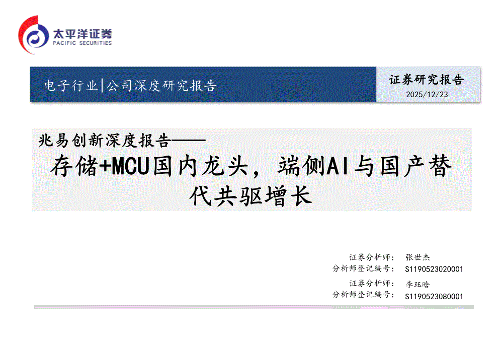 兆易创新:太平洋证券-兆易创新-603986-深度报告:存储+MCU国内龙头,端侧AI与国产替代共驱增长-251223