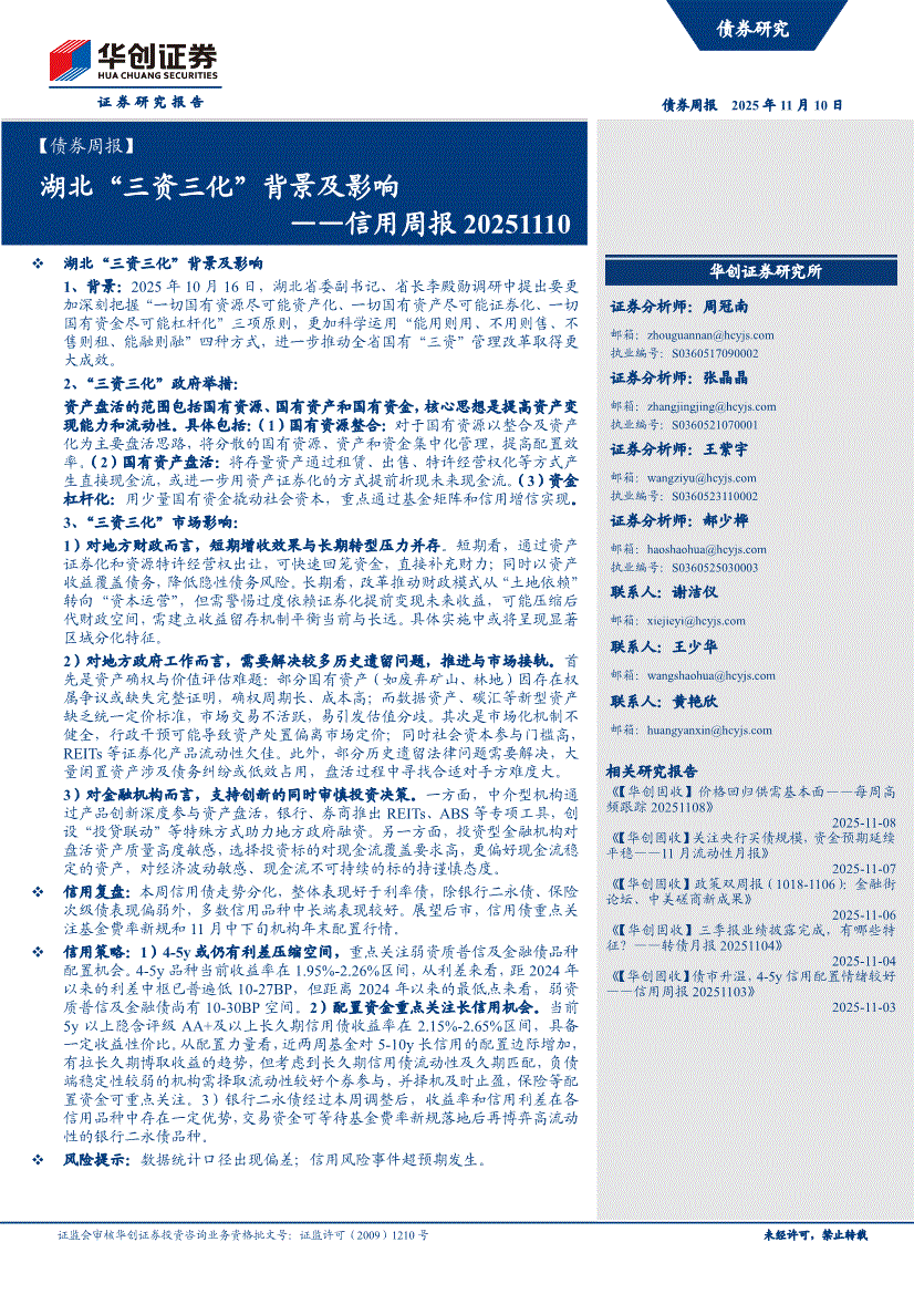 华创证券-【债券周报】信用周报:湖北“三资三化”背景及影响-251110