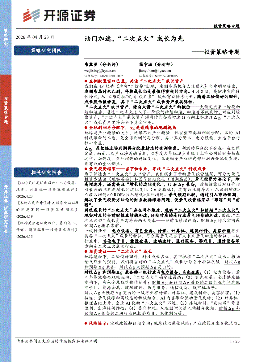 开源证券-投资策略专题:油门加速,“二次点火”成长为先-260423