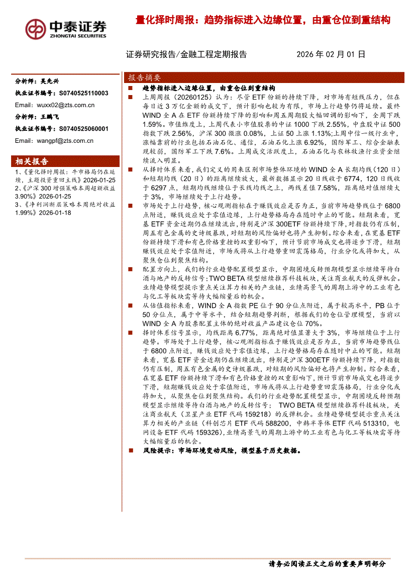 中泰证券-量化择时周报:趋势指标进入边缘位置,由重仓位到重结构-260201