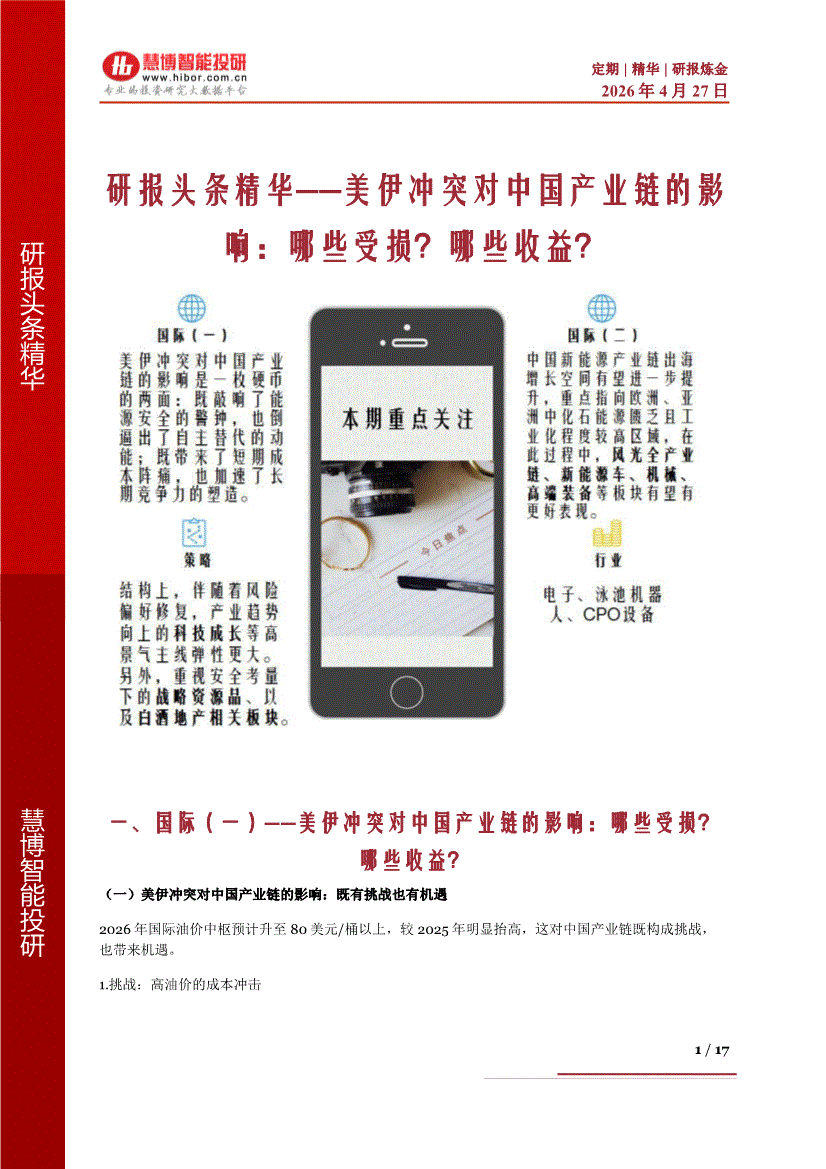 慧博智能投研-慧博研报炼金之研报头条精华:美伊冲突对中国产业链的影响,哪些受损?哪些收益?-260427