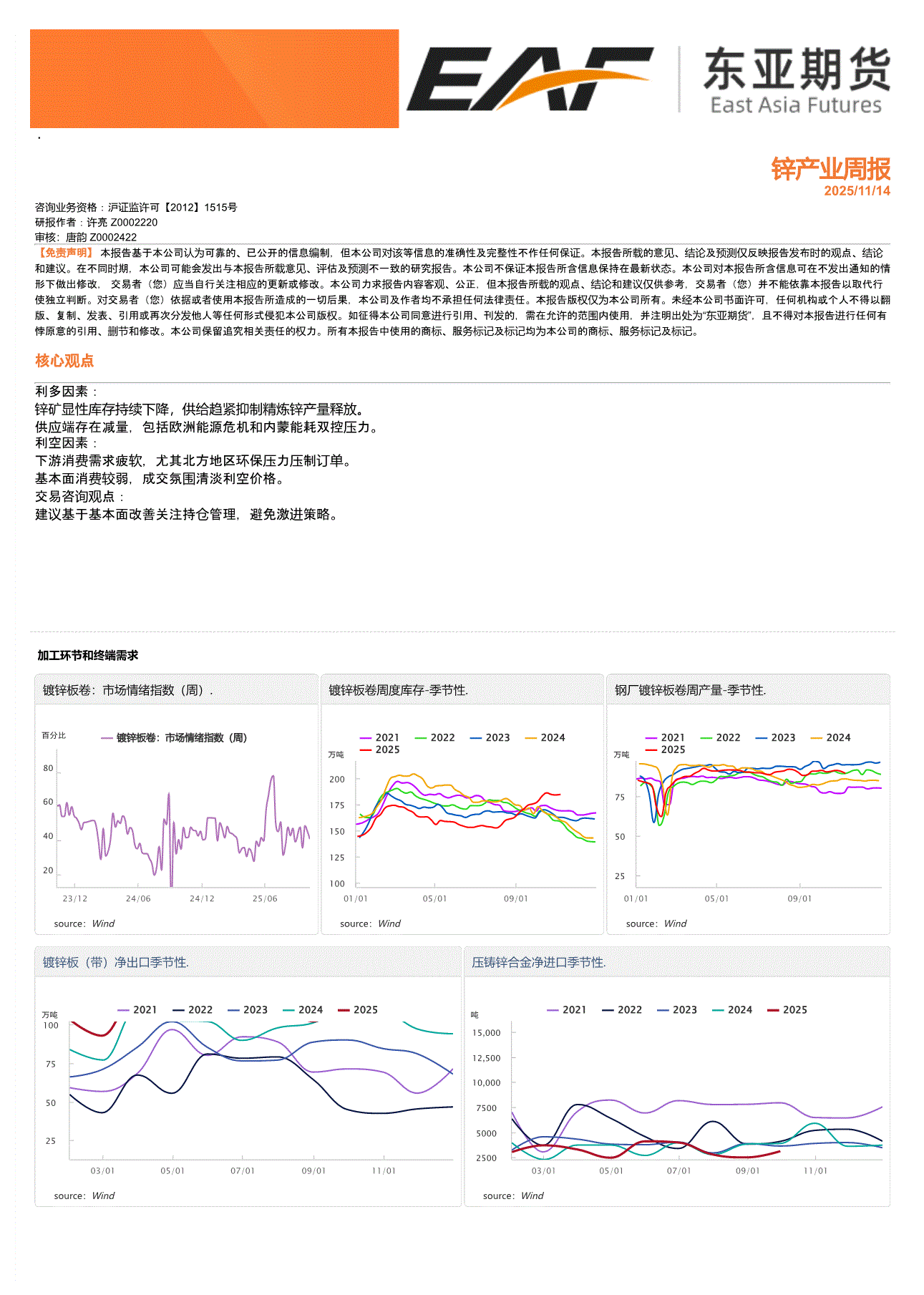 上海东亚期货-锌产业周报-251114