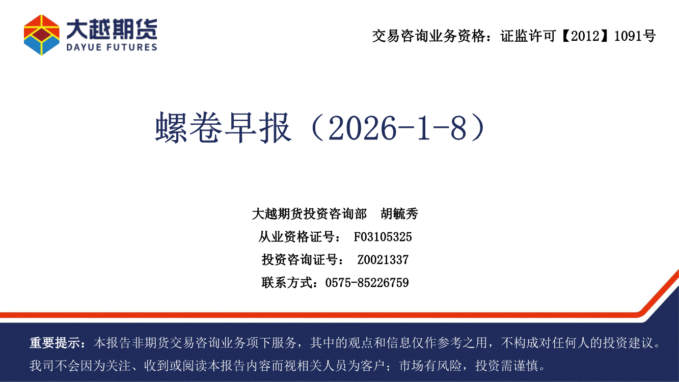 大越期货-螺卷早报-260108