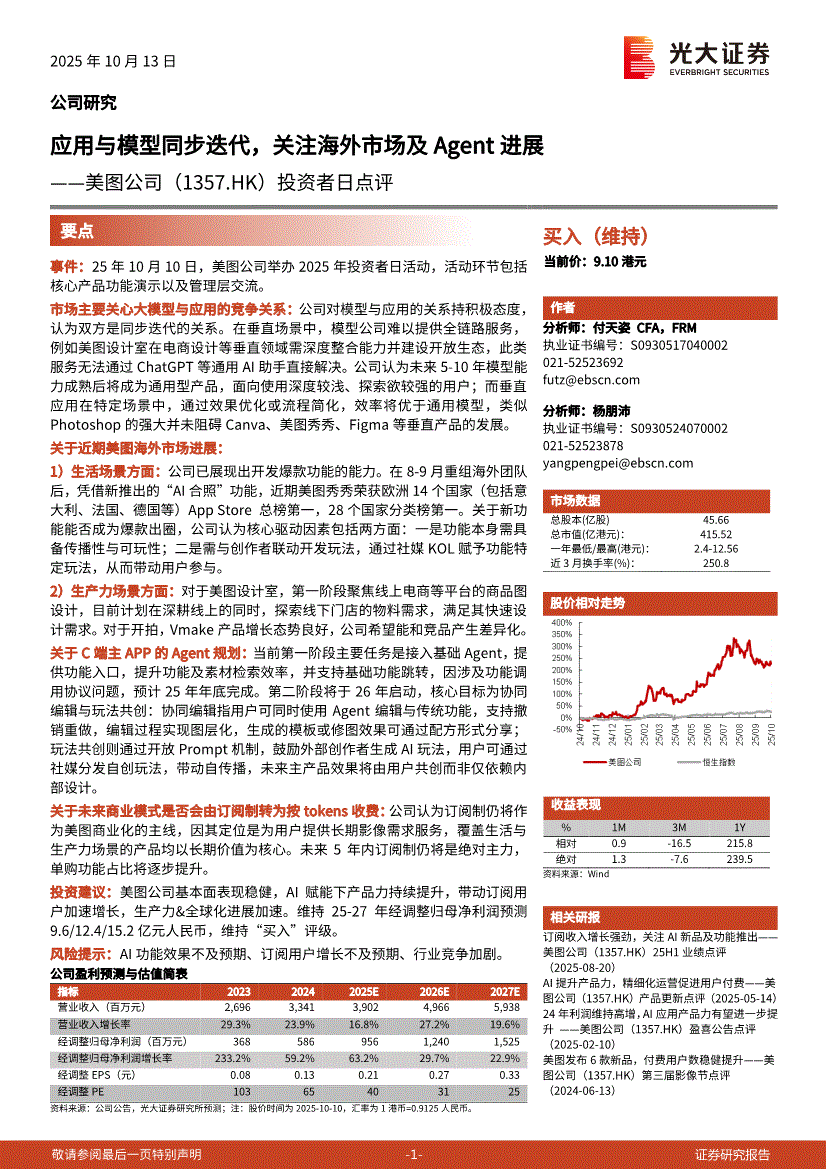 美图公司:光大证券-美图公司-1357.HK-投资者日点评:应用与模型同步迭代,关注海外市场及Agent进展-251013