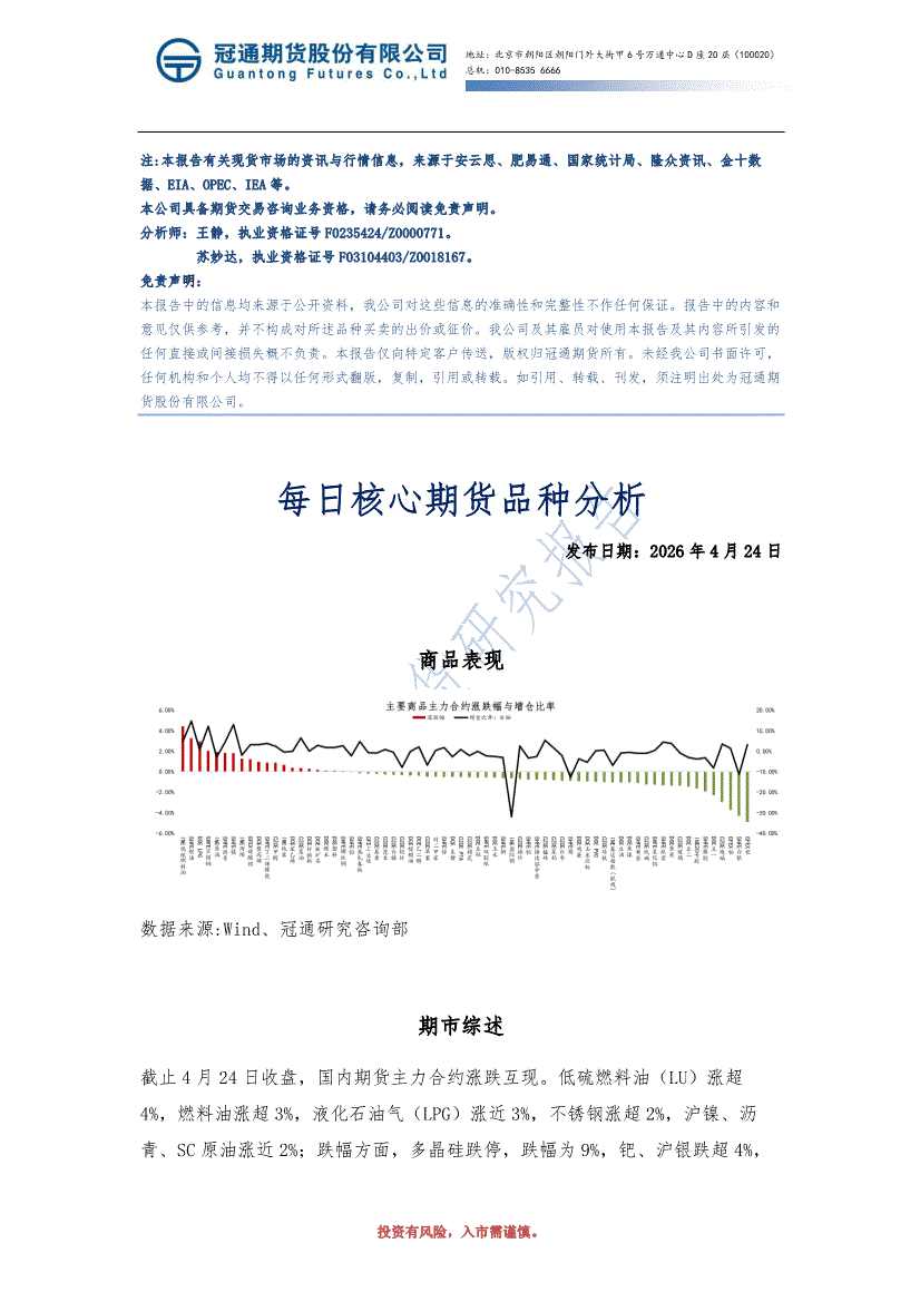 冠通期货-PP日报:PP低开后震荡上行-260424