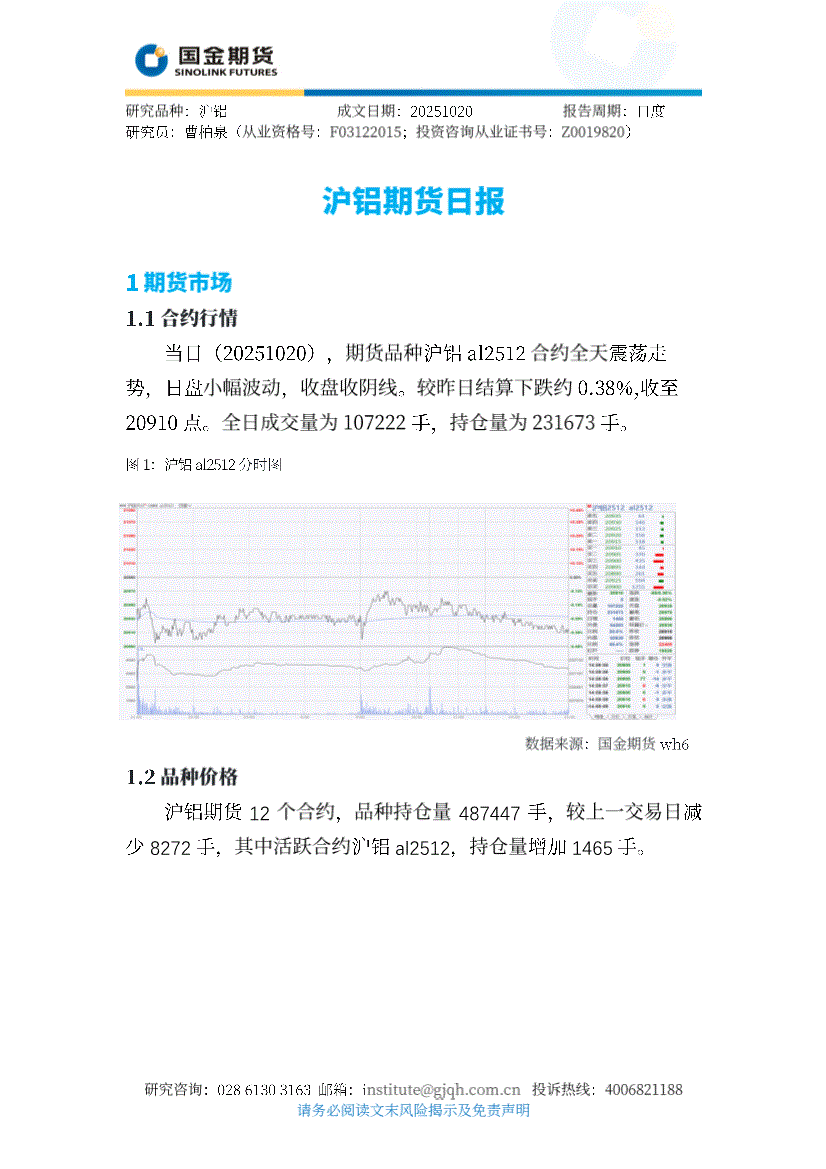 国金期货-沪铝期货日报-251020