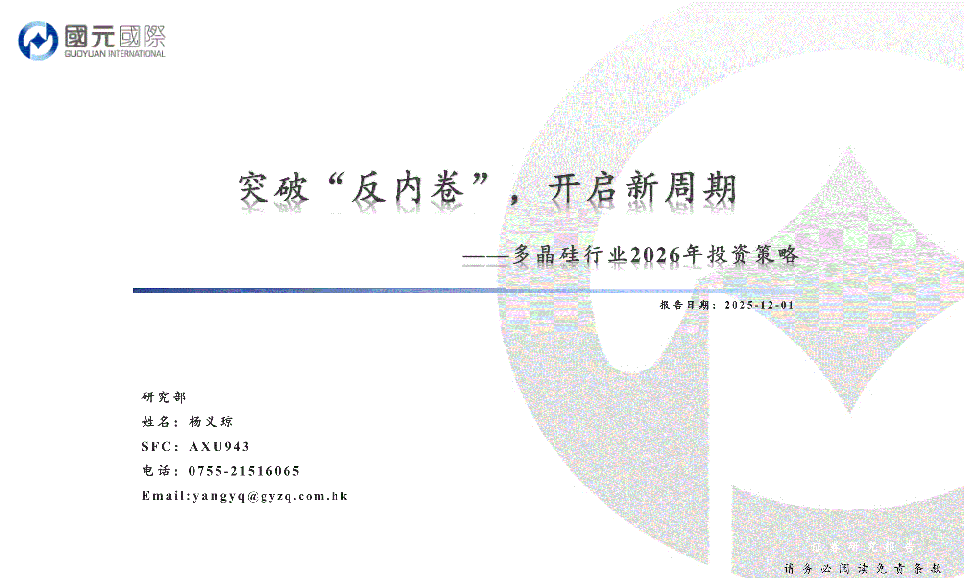 多晶硅行业:国元国际-多晶硅行业2026年投资策略:突破“反内卷”,开启新周期-251201