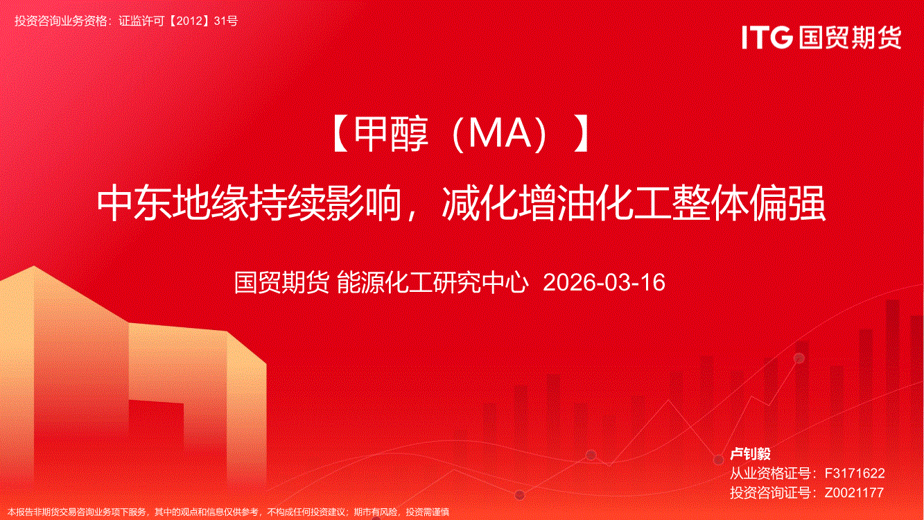 国贸期货-【甲醇(MA)】中东地缘持续影响,减化增油化工整体偏强-260316