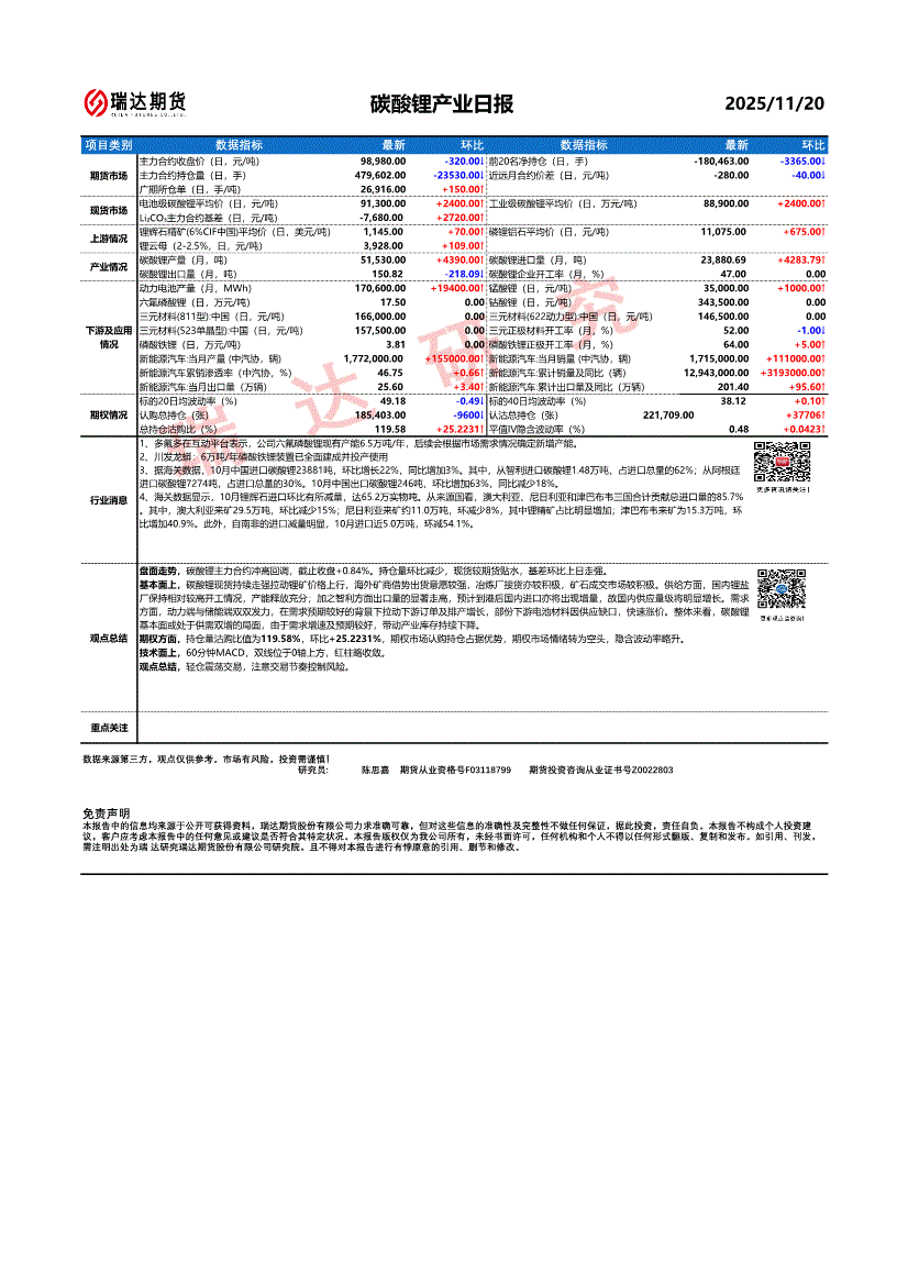 瑞达期货-碳酸锂市场周报:多空博弈波动加剧,锂价或将震荡运行-251121