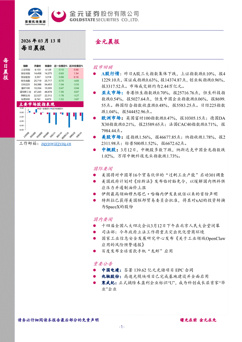 金元证券-晨报-260313