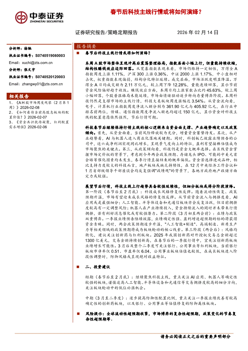 中泰证券-春节后科技主线行情或将如何演绎?-260214