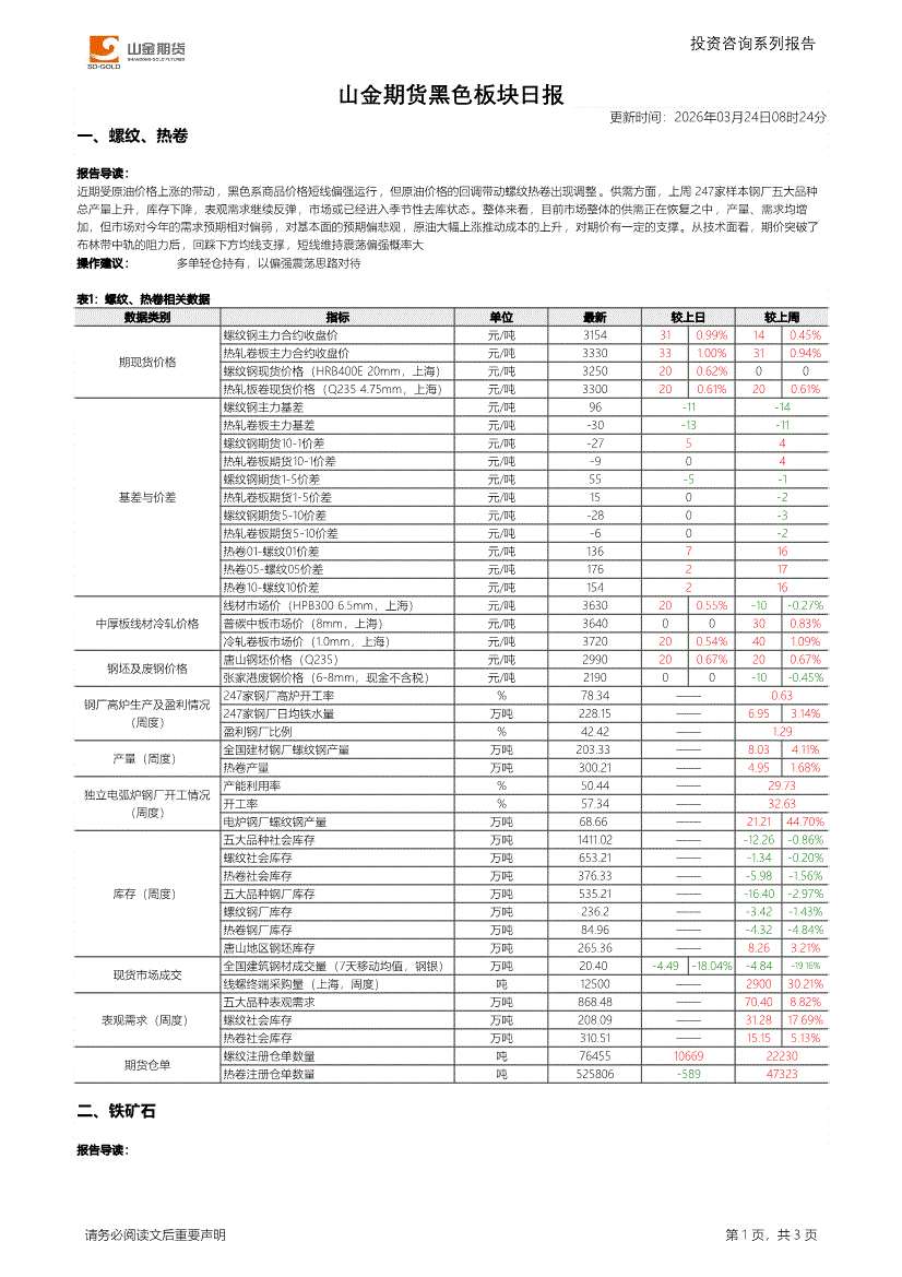 山金期货-黑色板块日报-260324