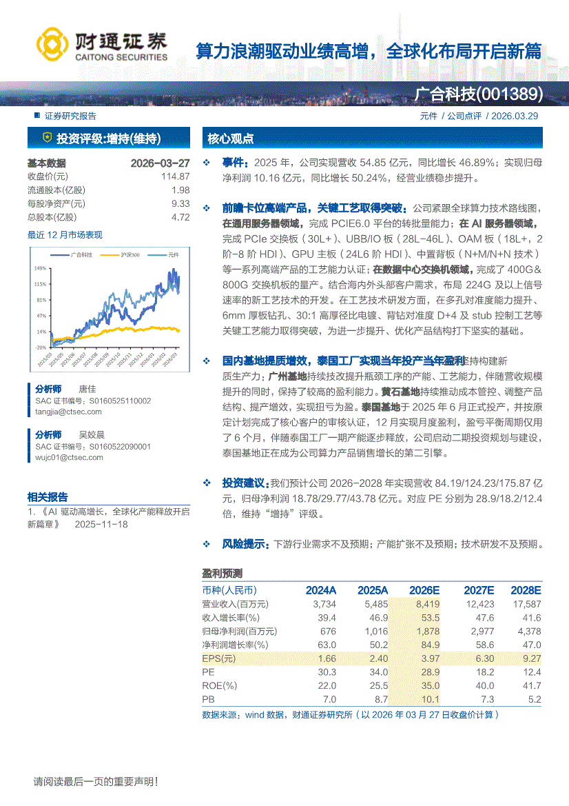 广合科技:财通证券-广合科技-001389-算力浪潮驱动业绩高增,全球化布局开启新篇-260329
