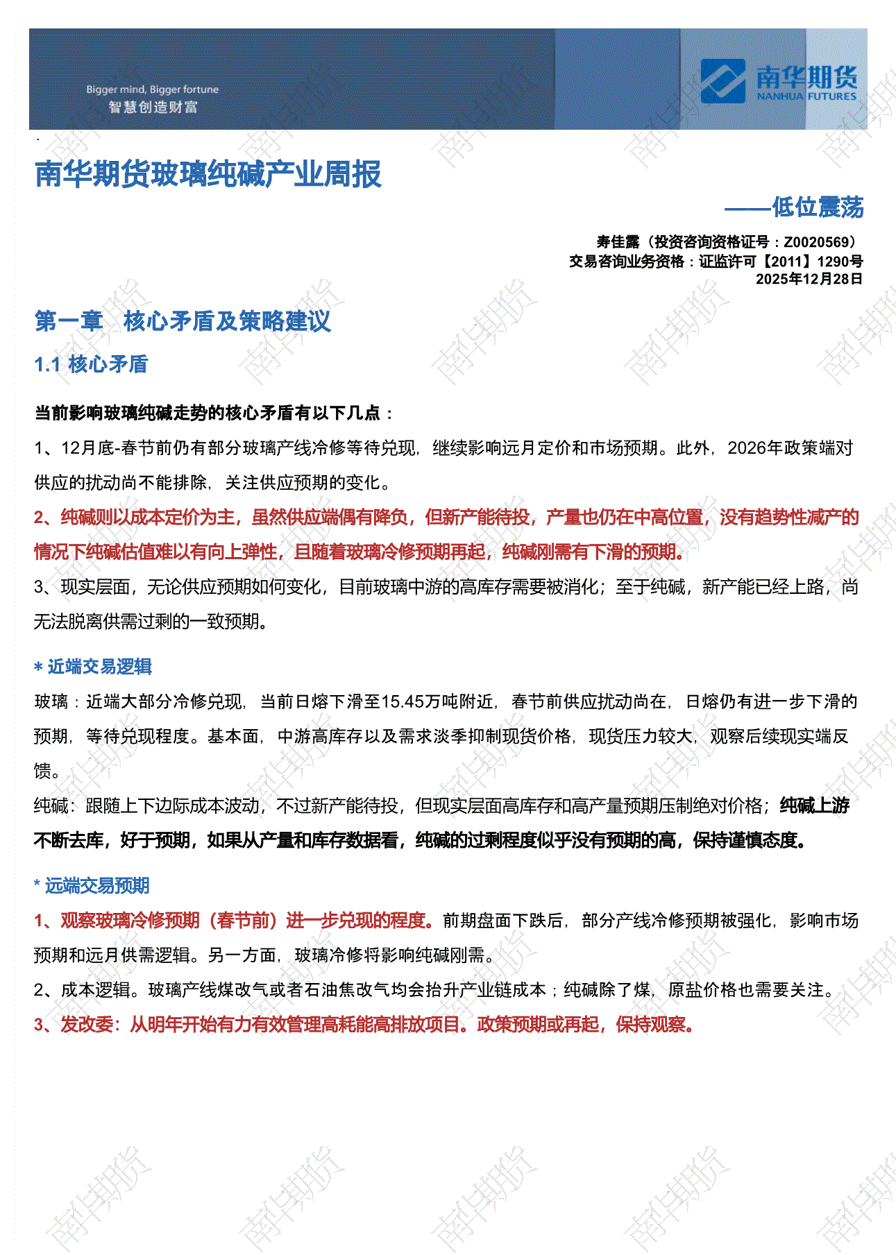 南华期货-玻璃纯碱产业周报:低位震荡-251228