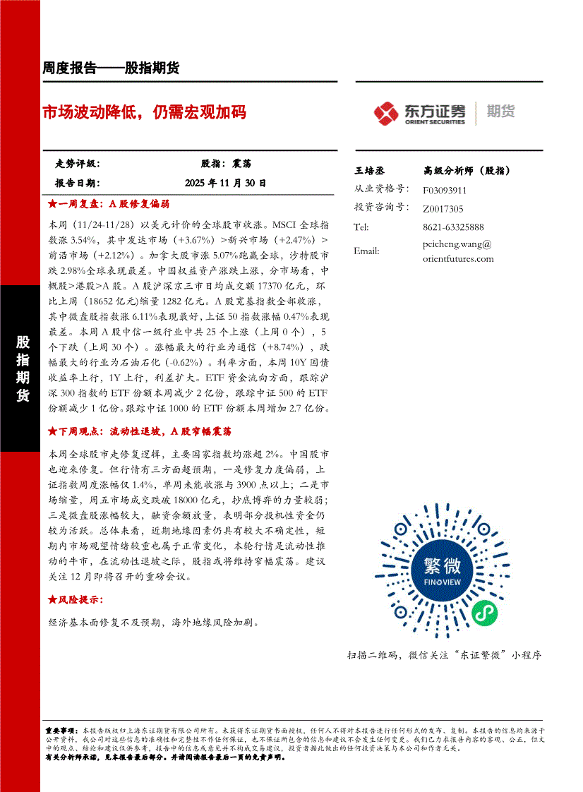 东证期货-股指期货周度报告:市场波动降低,仍需宏观加码-251130