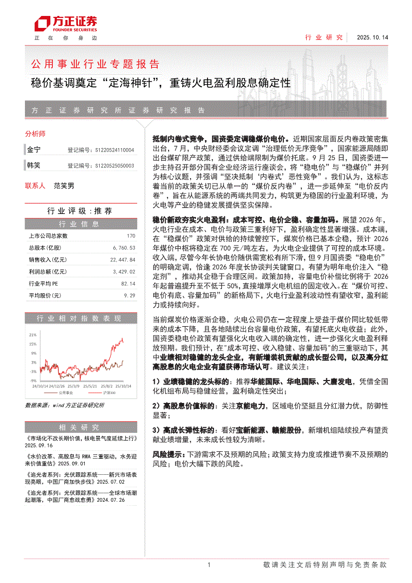 公用事业行业:方正证券-公用事业行业专题报告:稳价基调奠定“定海神针”,重铸火电盈利股息确定性-251014