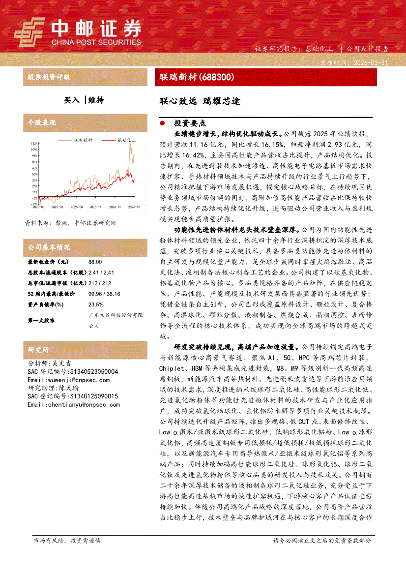 联瑞新材:中邮证券-联瑞新材-688300-联心致远,瑞耀芯途-260331