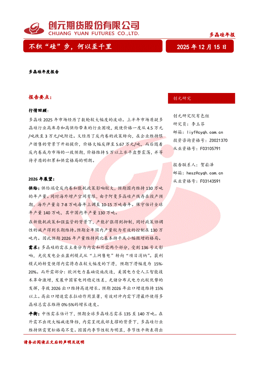创元期货-多晶硅年报:不积“硅”步,何以至千里-251215